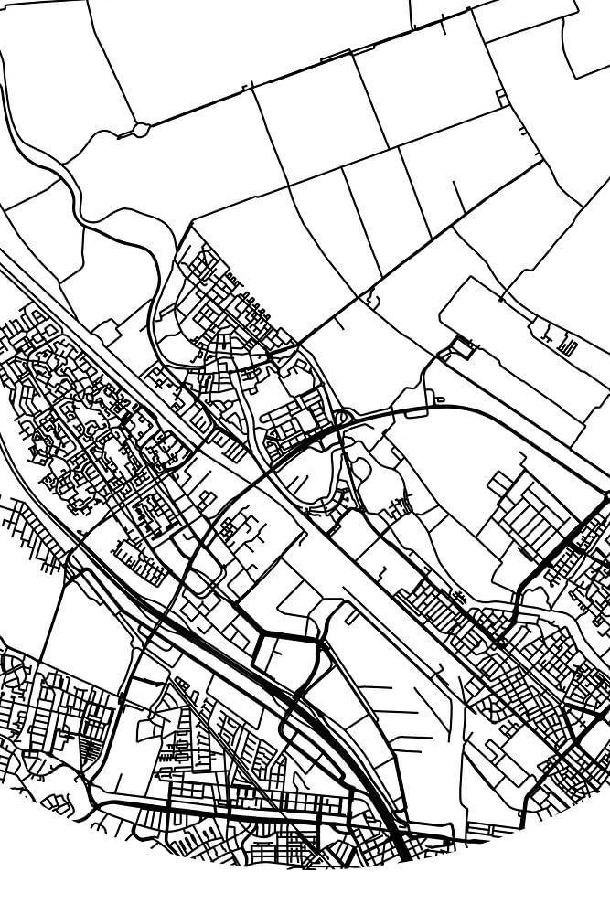 Black and white map, street map or street plan of Maarssen. Maarssen is located in the municipality StichtseVecht, province Utrecht. On the city map all public roads in Maarssen are included. Furthermore, the map is provided with the coordinates of the center of Maarssen.