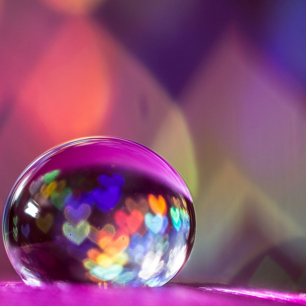 Buy the photo Macro of a drop with hearts by Bert Nijholt on canvas, ArtFrame, poster and wallpaper, printed on demand in high quality.
