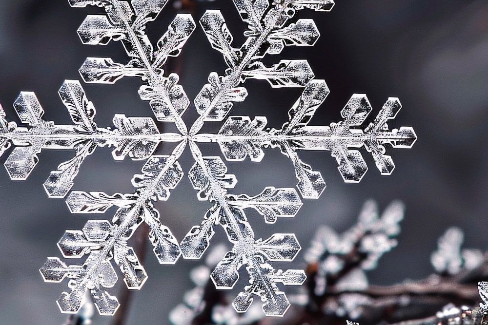 This stunning macro photography design captures the delicate beauty of a single snowflake in breathtaking detail. The fragile symmetry and icy splendour of the snowflake are highlighted against a soft, hazy background that puts the full focus on the flake's unique pattern. The monochrome colour scheme with subtle tones of white, grey, and silver, adds a timeless elegance to the image. Perfect for those who want to bring a touch of nature into their interiors, whether in a bedroom, office, or living room. This artwork exudes tranquillity, simplicity and the wonders of nature, ideal for minimalist and modern spaces.