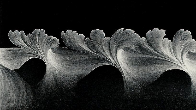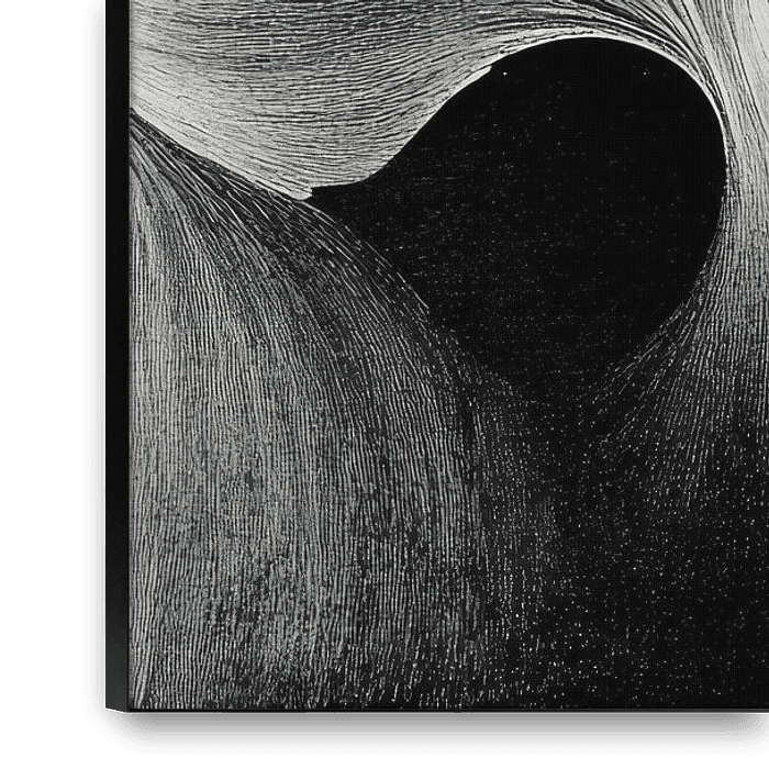 This artwork is an intriguing abstract composition of flowing, undulating shapes that create a harmonious play of light and shadow. The subtle textures and the contrast between dark and light elements give the work a dynamic and almost meditative feel. Perfect as wall decoration in a modern interior, adding a sense of movement and…