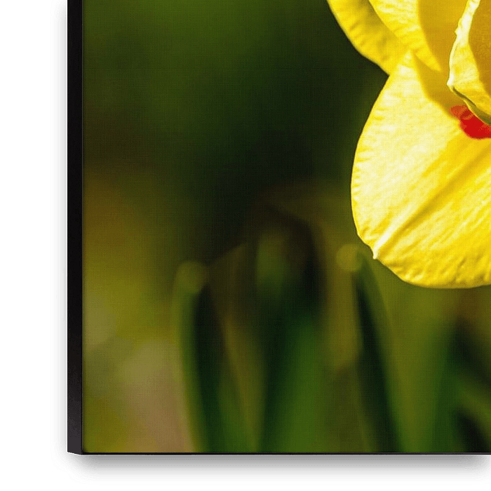 Buy this flower art Macro yellow daffodil with bokeh in spring by Dieter Walther on canvas, ArtFrame, poster and wallpaper, printed on demand in high quality.