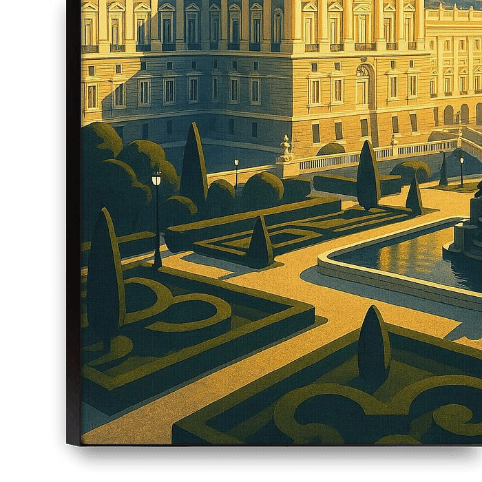 Bring the timeless beauty of Madrid into your home with this Art Deco inspired poster. Featuring bold lines, radiant sunbeams, and the majestic Royal Palace, this artwork captures the elegance of Spain’s capital in a vintage travel style. The harmonious blend of golden tones and soft blues creates a striking contrast that evokes both…