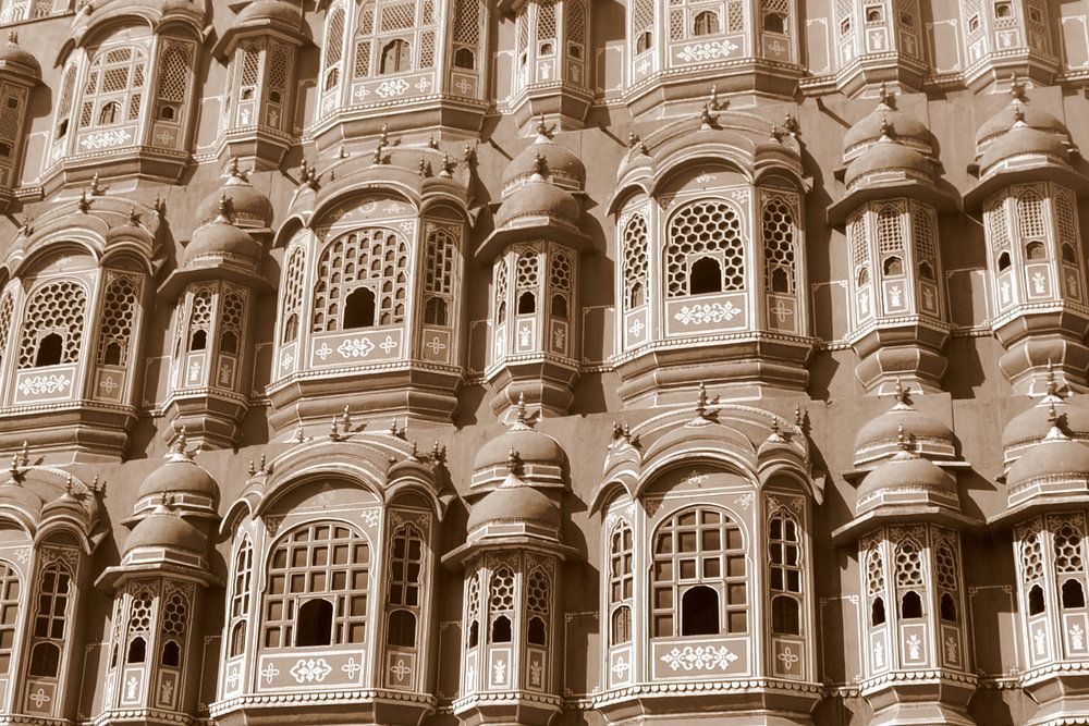 Magnificent historic architecture. The Palace of the Winds has many windows at the front.