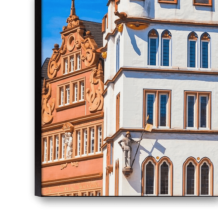 Buy this landscape artwork Main market with Petrusbrunnen in Trier by Werner Dieterich on canvas, ArtFrame, poster and wallpaper, printed on demand in high quality.