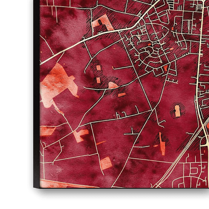 This map of Ahlen has our custom made style “Amber Autumn". It's got the natural colours of the season, inspired by autumn leaves. The earthy tones of this map of Ahlen will give your interior a warm look.