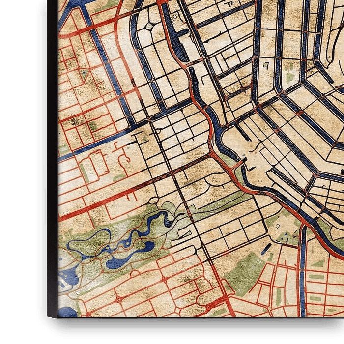This map of Amsterdam centrum features our custom style “Serene Summer”. This style is characterised by the warm, sun-drenched earthy tones. The color palette is inspired by the Art Nouveau style of the turn of the century. This map of Amsterdam centrum gives your interior a classic, modern look.