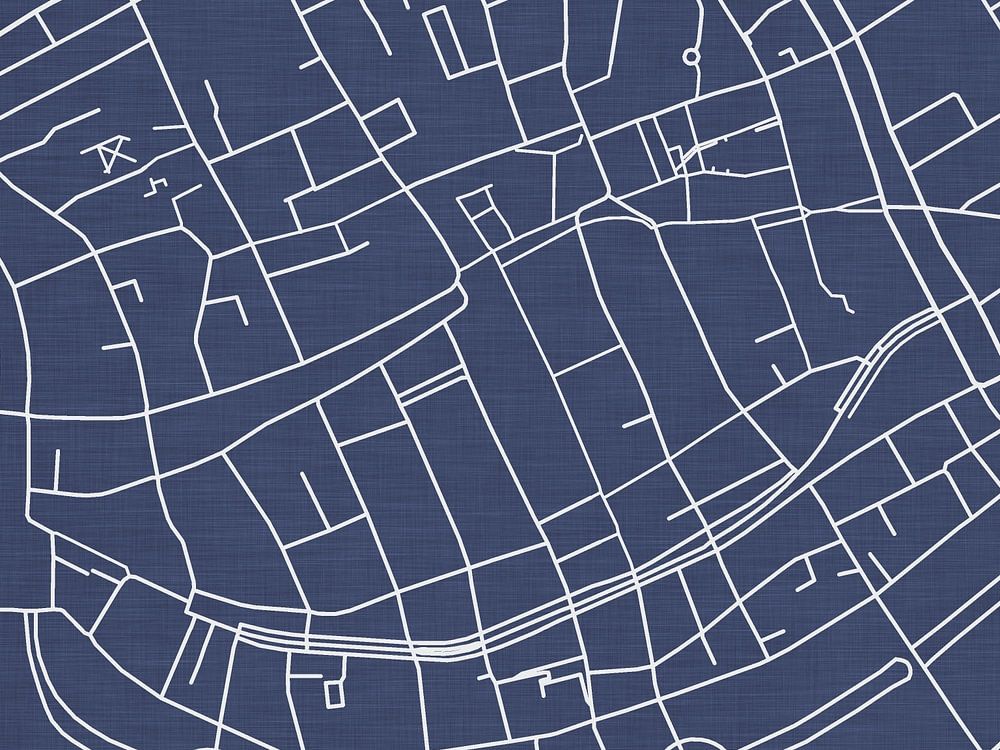 Explore Groningen Centrum with this map in the Royal Blue style. The white roads contrast against a deep blue background. Combined with a subtle linen texture, this map adds a touch of refinement and tranquility to any space where it is displayed.