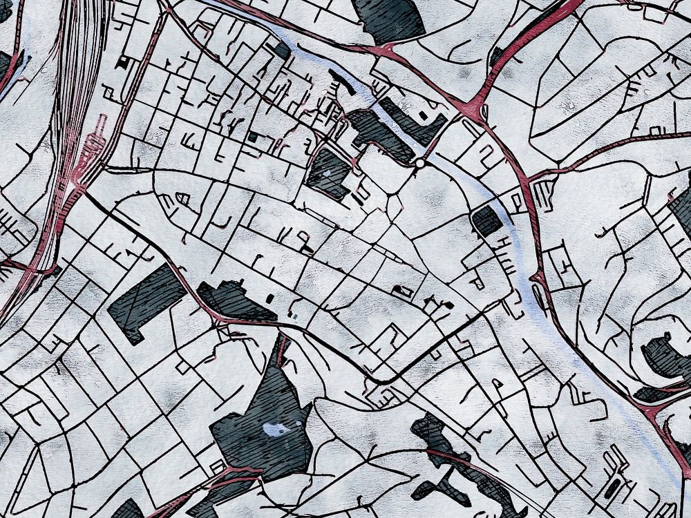 This map of Hagen has our custom made style "White winter". The dark red streets form warm veins in the cold snow covered landscape. While the vegetation is preparing itself leafless for the coming spring. This wintery map of Hagen will give your interior a refreshing look.