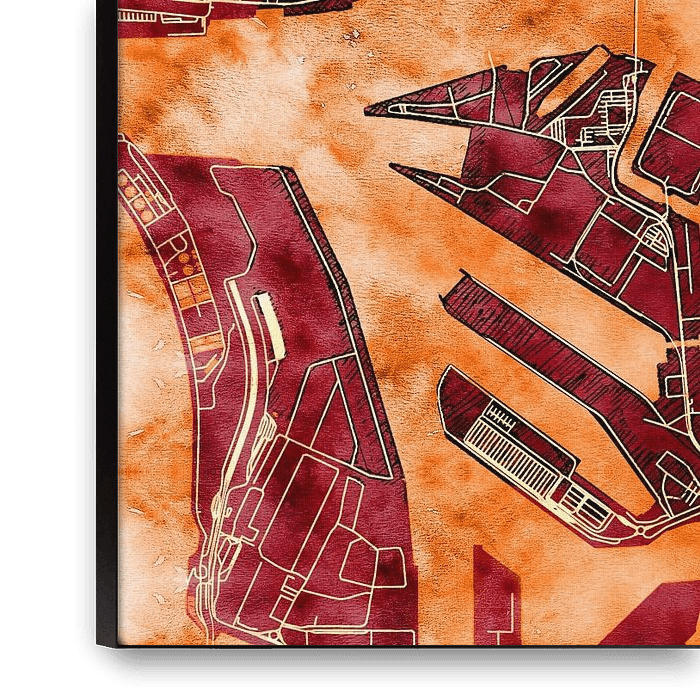 This map of Hamburg centrum has our custom made style “Amber Autumn". It's got the natural colours of the season, inspired by autumn leaves. The earthy tones of this map of Hamburg centrum will give your interior a warm look.