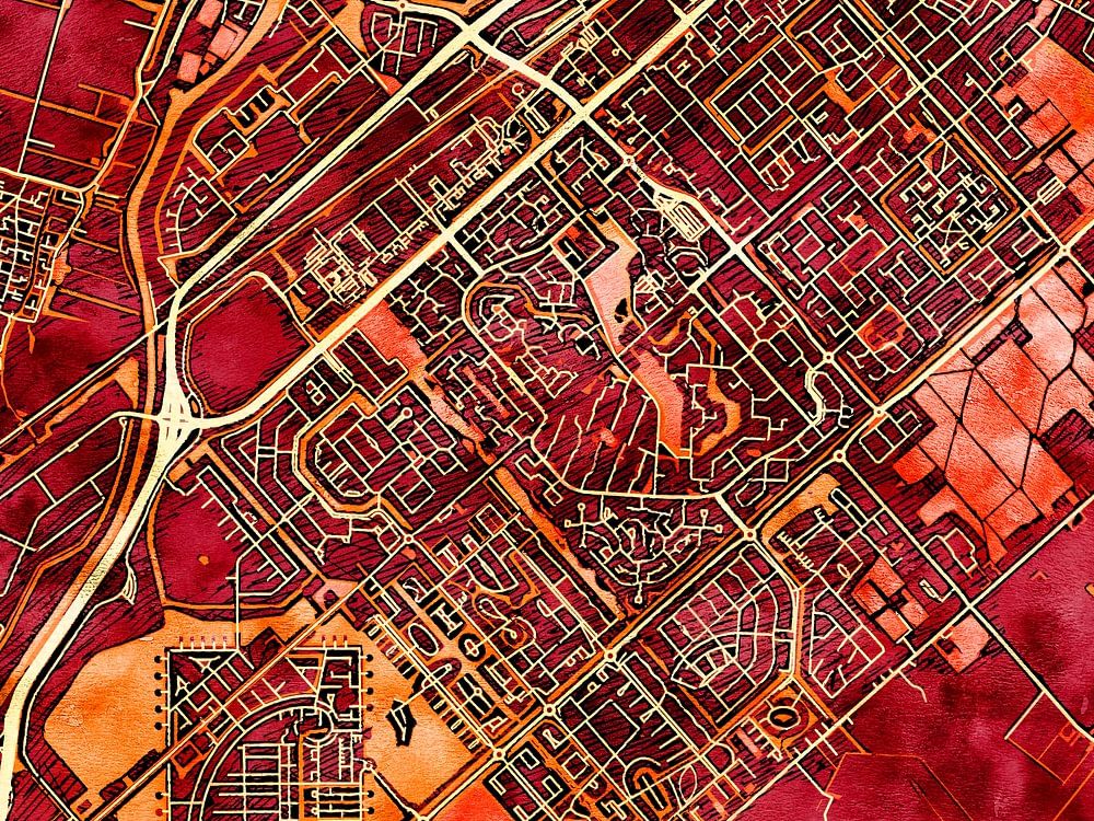 This map of Heerhugowaard has our custom made style “Amber Autumn". It's got the natural colours of the season, inspired by autumn leaves. The earthy tones of this map of Heerhugowaard will give your interior a warm look.