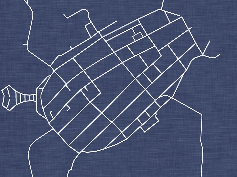 Explore Naarden with this map in the Royal Blue style. The white roads contrast against a deep blue background. Combined with a subtle linen texture, this map adds a touch of refinement and tranquility to any space where it is displayed.