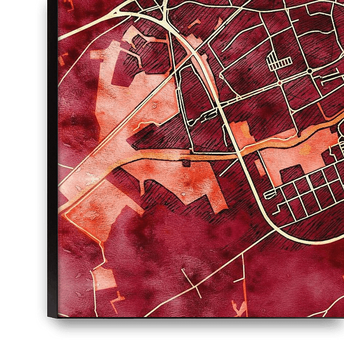 This map of Ninove has our custom made style “Amber Autumn". It's got the natural colours of the season, inspired by autumn leaves. The earthy tones of this map of Ninove will give your interior a warm look.
