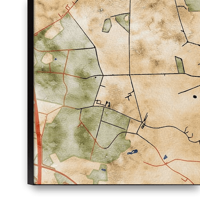 This map of Norderstedt features our custom style “Serene Summer”. This style is characterised by the warm, sun-drenched earthy tones. The color palette is inspired by the Art Nouveau style of the turn of the century. This map of Norderstedt gives your interior a classic, modern look.