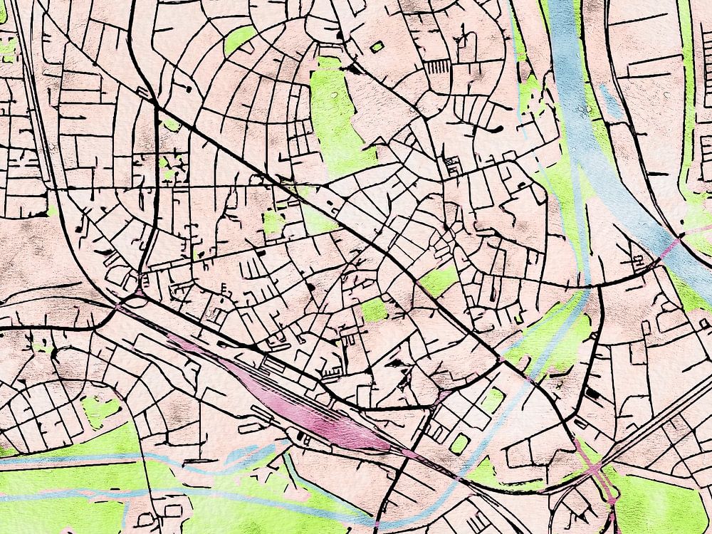 This map of Rosenheim has our custom style “Soothing Spring”. This style is inspired by Japanese drawings of colorful cherry blossoms. With its vibrant colours, this map of Rosenheim will bring your room to life.