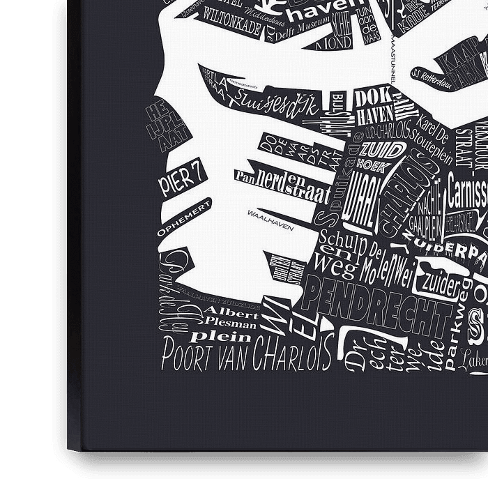 Who is not a fan of Rotterdam in the Netherlands? Unique map, map of street names. With, among others, the Euromast, Blijdorp, the Kuip Feijenoord, Ahoy, and much more. Beautifully detailed image to hang in your home or office!