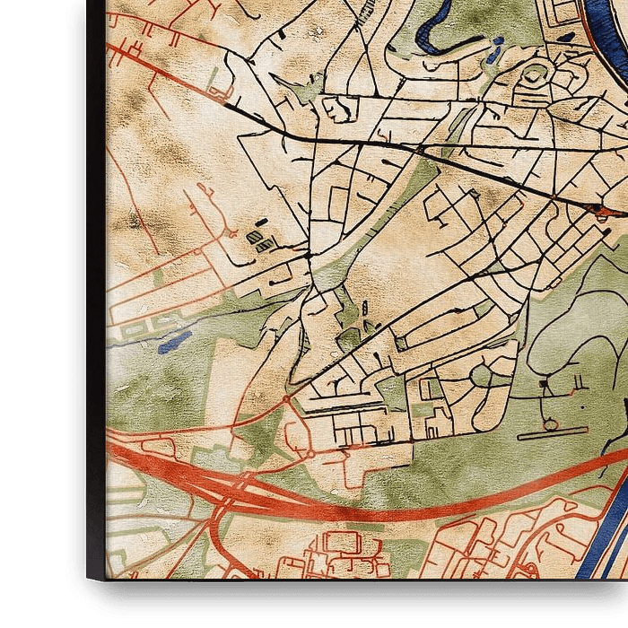 This map of Vilvoorde features our custom style “Serene Summer”. This style is characterised by the warm, sun-drenched earthy tones. The color palette is inspired by the Art Nouveau style of the turn of the century. This map of Vilvoorde gives your interior a classic, modern look.