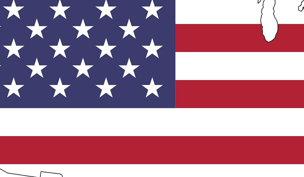 Map of the USA with the national flag of United States of America isolated on white background. Vector illustration.