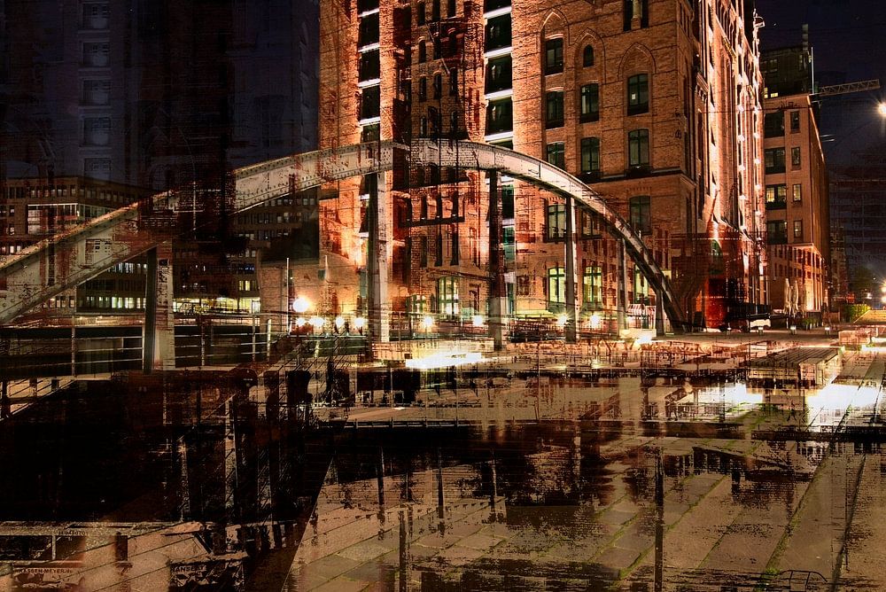 The image processing shows night shots of the Maritime Museum in Hamburg's Speicherstadt warehouse district. The warehouse, which has been converted into a museum, is part of the Speicherstadt and Kontorviertel districts, which are listed as a UNESCO World Heritage Site. Bus bridge, canal, reflection and various museum views round off the picture content. A visit to this part of the city belonging to the harbour with its brick baroque style is a must!