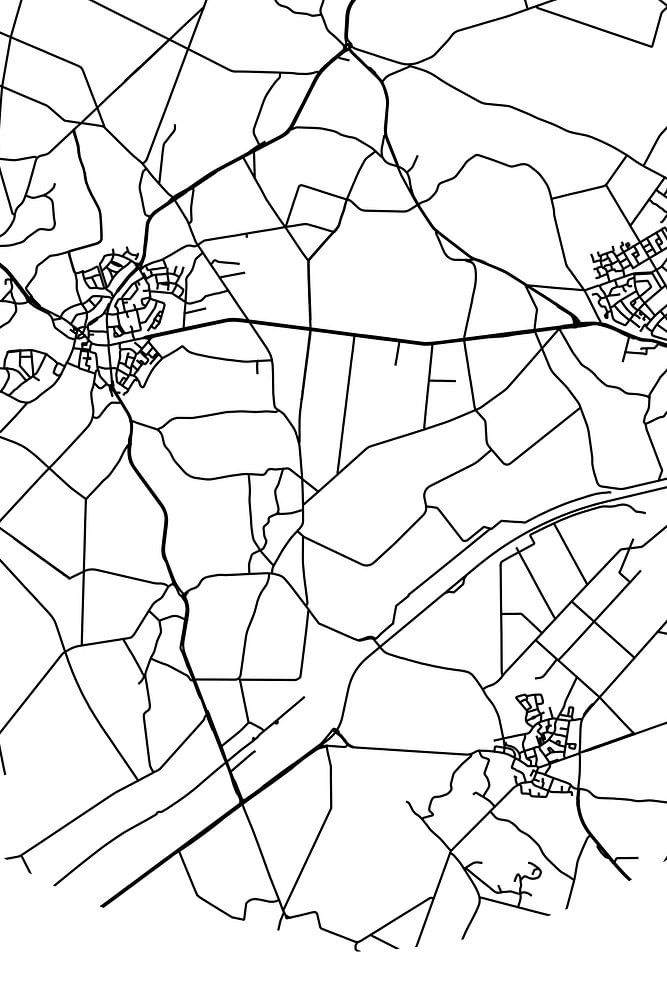 Black and white map, street map or street plan of Markelo. Markelo is located in Twente, in the municipality Hof van Twente, province Overijssel. On the city map all public roads in Markelo are included. Furthermore, the map is provided with the coordinates of the center of Markelo.