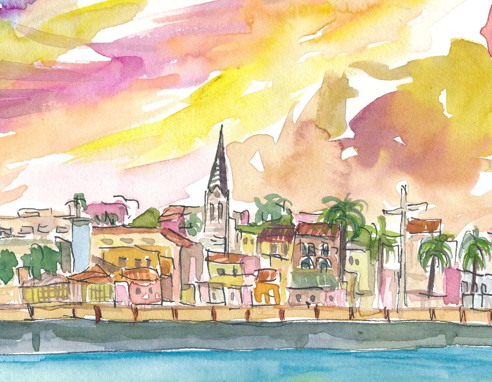 Buy this painting Martinique Fort de France Waterfront at sunrise by Markus Bleichner as a reproduction on canvas, ArtFrame, poster and wallpaper, printed on demand in high quality.