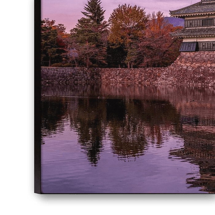 This breathtaking photo shows the historic Matsumoto Castle (Matsumoto-jo), also known as the "Crow Castle", during sunset. It is one of Japan's rare original surviving castles and a national treasure.