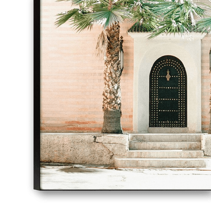 Buy the bestseller photo Medina of Marrakech Magic Morocco Pink building with palm trees in front of it by Raisa Zwart Travel Photography Prints on canvas, ArtFrame, poster and wallpaper, printed on demand in high quality.