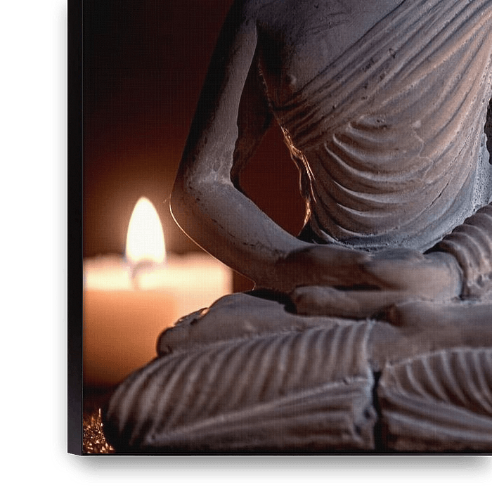 Buy the photo Meditating Buddha with candlelight by Alexander Baumann on canvas, ArtFrame, poster and wallpaper, printed on demand in high quality.