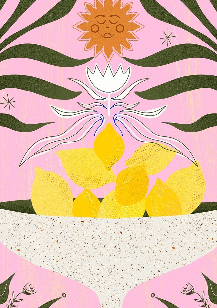 Buy this flower art Mediterranean Lemon Bowl by Baroo Bloom on canvas, ArtFrame, poster and wallpaper, printed on demand in high quality.
