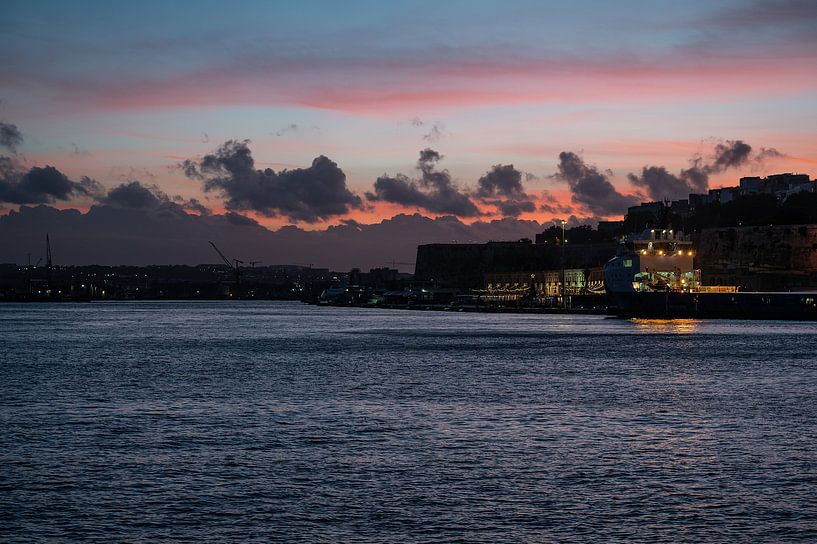 As dusk descends over Grand Harbour, a timeless panorama unfolds. Birgu and Cospicua, two of the legendary Three Cities, light up softly along the water. Pleasure craft and sailboats stand out against the calm harbour, while Valletta watches on the opposite shore.