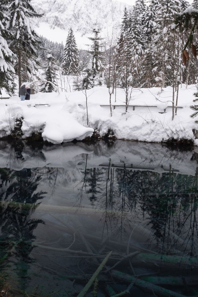 Crisp mountain lake in the Alps of Carinthia (Austria) that seems to be straight out of a winter fairy tale.
