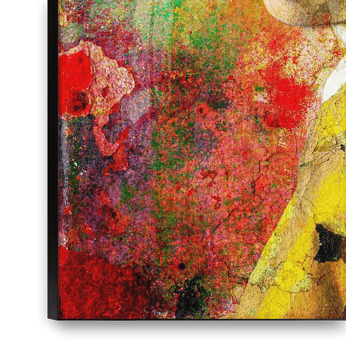 The famous painting "Girl with a Pearl Earring", painted around 1665-1667 by the Dutch painter Johannes Vermeer and in 2019 digitally transformed by me into a modern and colourful work of art, like graffiti on a wall.