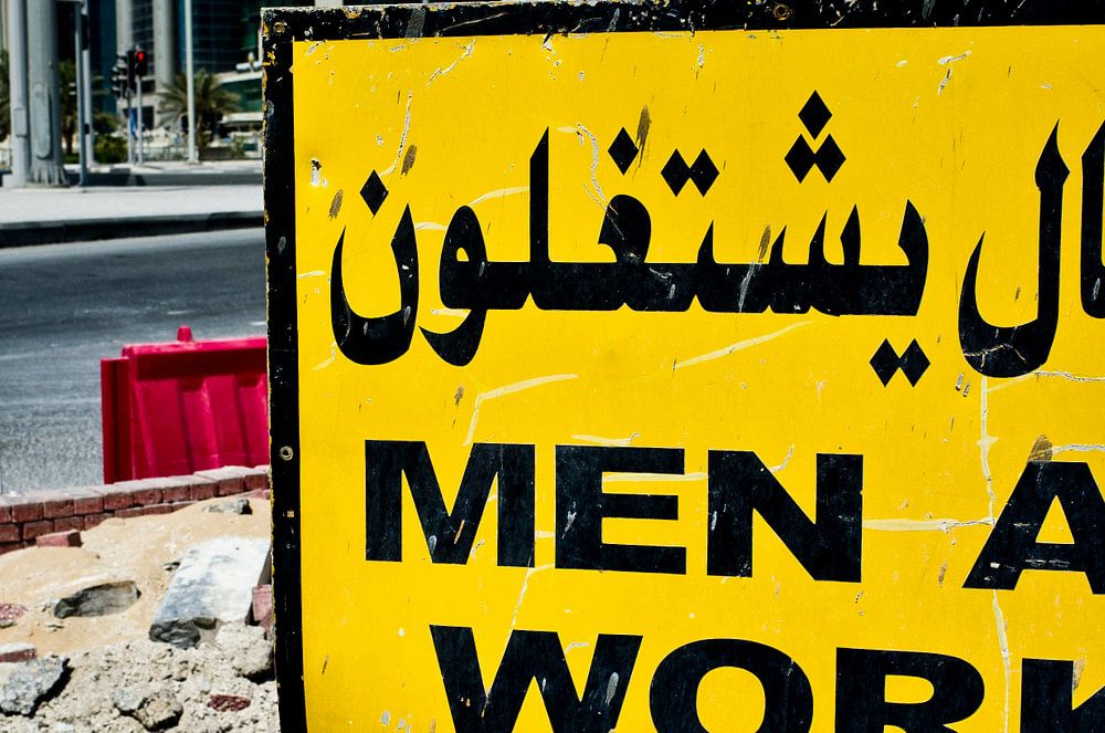 The photo of this traffic sign is made in Doha, the capital of Qatar. It seems like a warning for people who work in the heat!