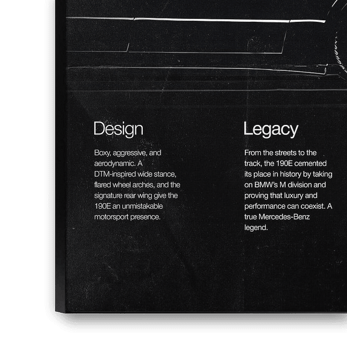 Buy this digital art artwork Mercedes 190E Vintage by Ali Firdaus as a reproduction on canvas, ArtFrame, poster and wallpaper, printed on demand in high quality.