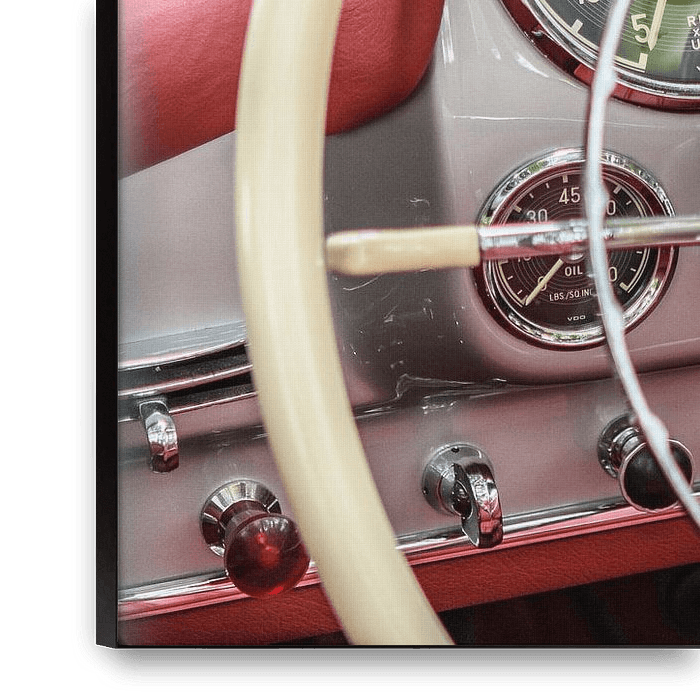 Mercedes-Benz 190SL Convertible interior with red leather and aluminium trim. The Mercedes 190 SL is a German sports car produced from 1955 until 1963 internally referred to as W121.