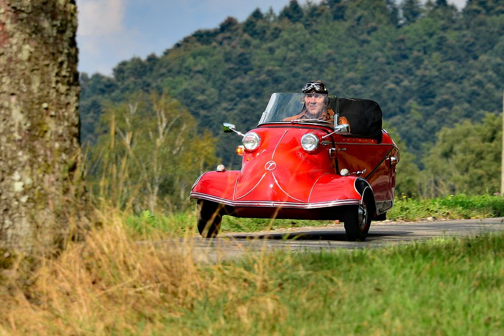 What a speedster, this Messerschmitt cabin scooter. Since 1957, it has been flying over our roads as a small car with its sleek aircraft shape and 10 hp. Its reputation is legendary worldwide and its fan base huge. The Roadster is the coveted convertible among the small historic runabouts.