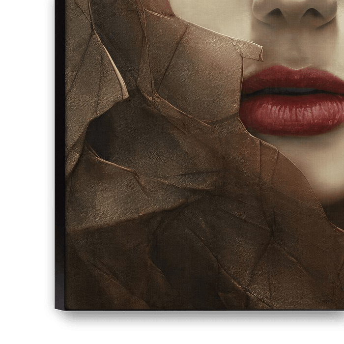 Surreal abstract portrait of a woman with the concept of metamorphosis, the emergence of a caterpillar into a beautiful butterfly. Mixed media fantasy painting in beige tones with red and gold accents.