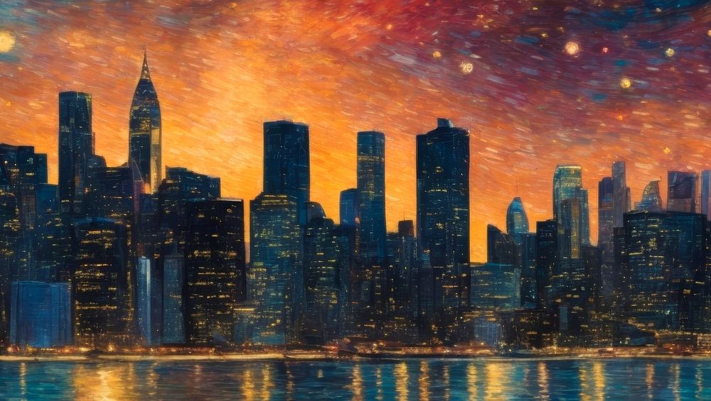 "Metropolis Under the Stars" is a modern interpretation of Van Gogh's "Starry Night", in which the iconic swirls and twinkling stars unite over the silhouette of a contemporary city. It is a work that captures the vibrant energy of urban culture beneath a dancing cosmos, symbolising both the endless possibilities and humanity's puny place in the universe.