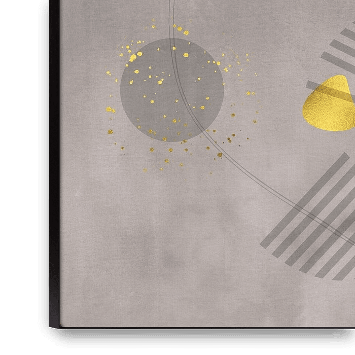 Modern abstract and minimalistic Mid-Century graphic art with an elegant touch. Abstract shapes in a delicate tone as well as in a dominant gold compose the scene.
