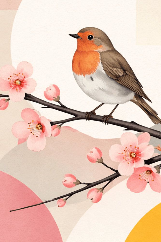 A subtle Nordic-style artwork depicting a small wren perched on soft golden grasses within layered neutral geometric forms. The understated palette and open composition align with Scandinavian minimalism and Japandi interiors. Perfect for bedrooms, home offices, or calm living spaces that value light and simplicity. The gentle tones…