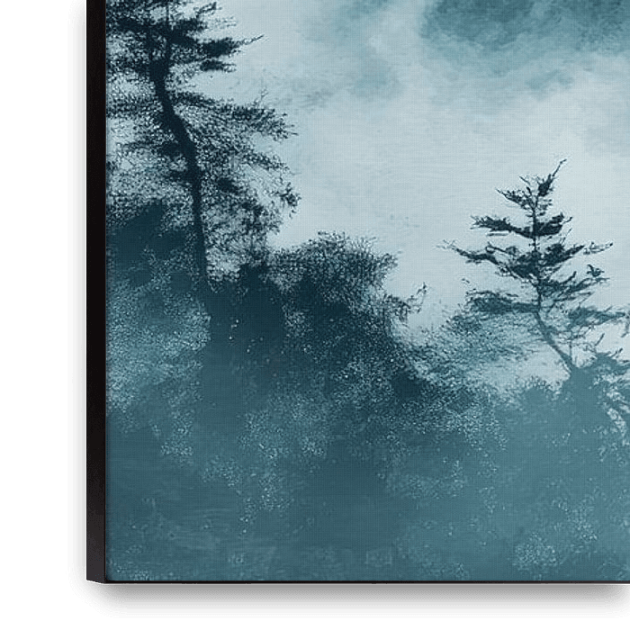 A dreamlike mountain landscape unfolds in soft shades of grey, into which gentle wafts of mist drift. The majestic peaks and shadowy tree silhouettes create an atmosphere of calm and contemplation. Perfect for the bedroom, this work of art invites you to dream and relax while adding a harmonious, mystical touch to the room.
