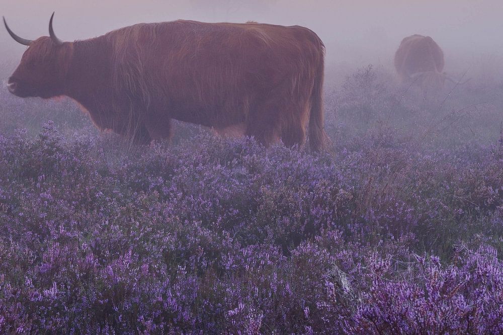 Misty purple heather with Scottish highlanders by Tim Vlielander