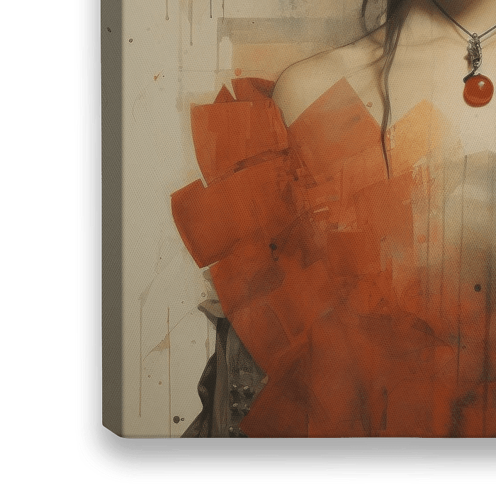 Mixed media portrait in earth tones and red. Choose the material and format yourself and create this work entirely to your liking.