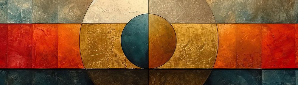 Modern Abstract Circle - Abstract geometric, modern circle, colourful canvas Details: abstract, modern, geometric, circle, red, blue, gold, colourful, canvas, art Colours: blue, gold, red, orange, white, black Modern Abstract Circle