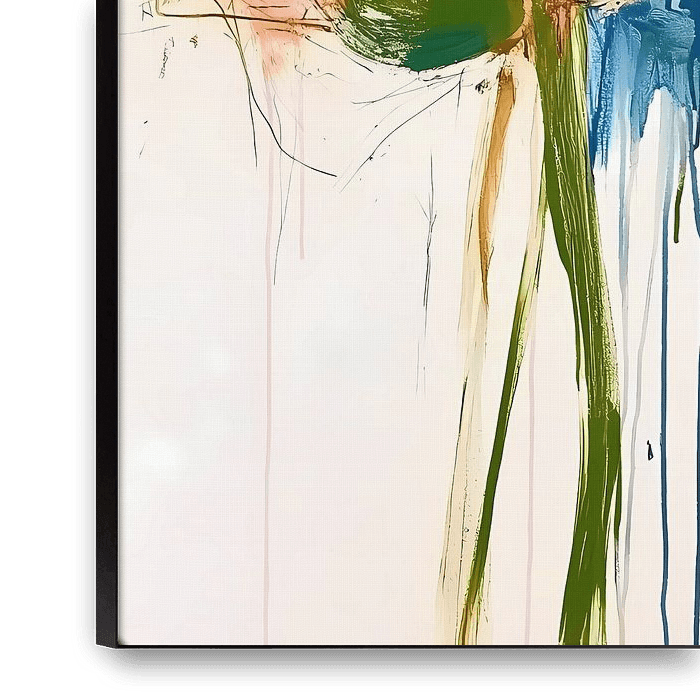 Fluid lines and layered textures make this artwork a lively statement piece that adds color and energy to any space.