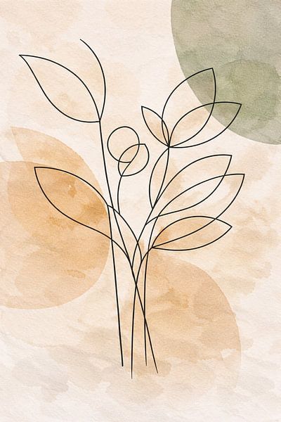 This modern botanical line art combines organic lines with subtle neutral and green tones for a fresh yet calming look. Perfect for a Scandinavian living room or contemporary interior. It adds a light, natural accent without overwhelming the space.