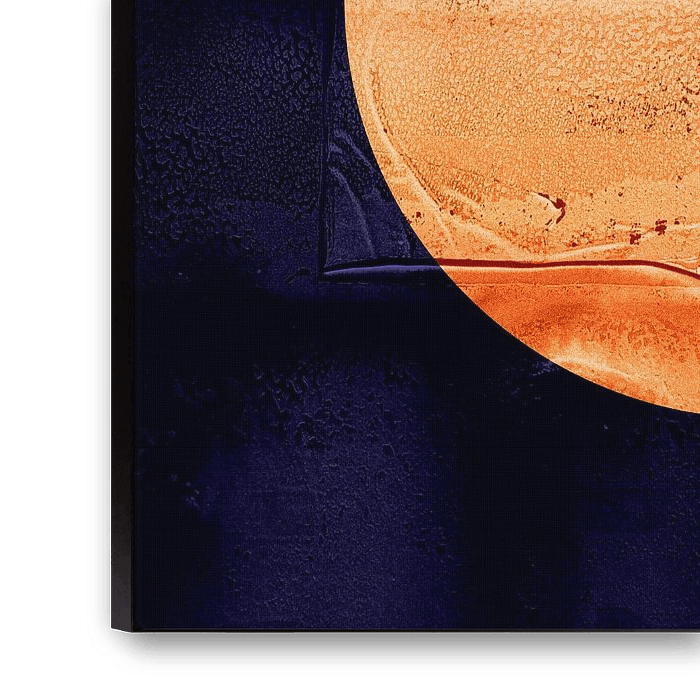 Japandi moon with spatulated relief 3D structure texture in night colours such as dark blue, midnight blue, copper, slate grey, black, gold, old gold, charcoal grey, ink black.