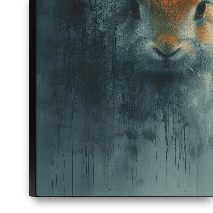 Details: rabbit, portrait, abstract, ethereal, animal, grey, orange, black, white, blue