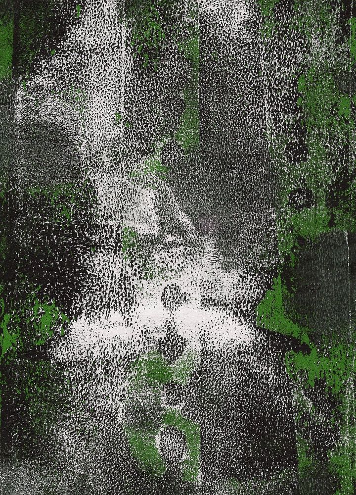 Modern abstract art. Organic shapes in neon green and black by Dina Dankers