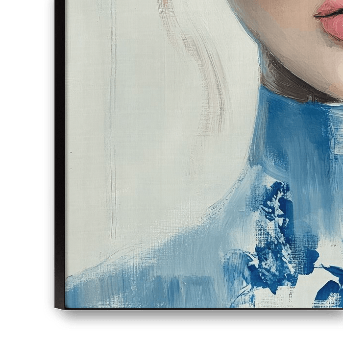 Modern abstract portrait in Delft Blue. A special eye-catcher for your interior! Choose the format and material for this work and make it your own.