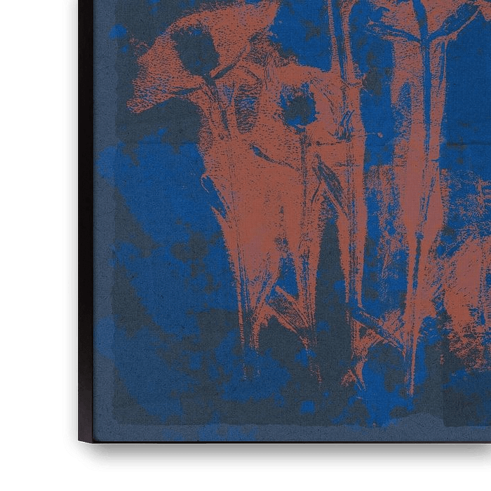 About "Modern botanical art. Flowers in terracotta on cobalt blue."